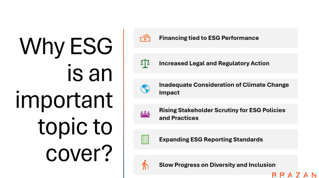 - Regulatory Compliance Challenges: The evolving landscape of ESG regulations and standards presents compliance challenges for companies navigating complex reporting requirements. Non-compliance or inadequate disclosure may expose companies to legal sanctions, financial penalties, and reputational damage.